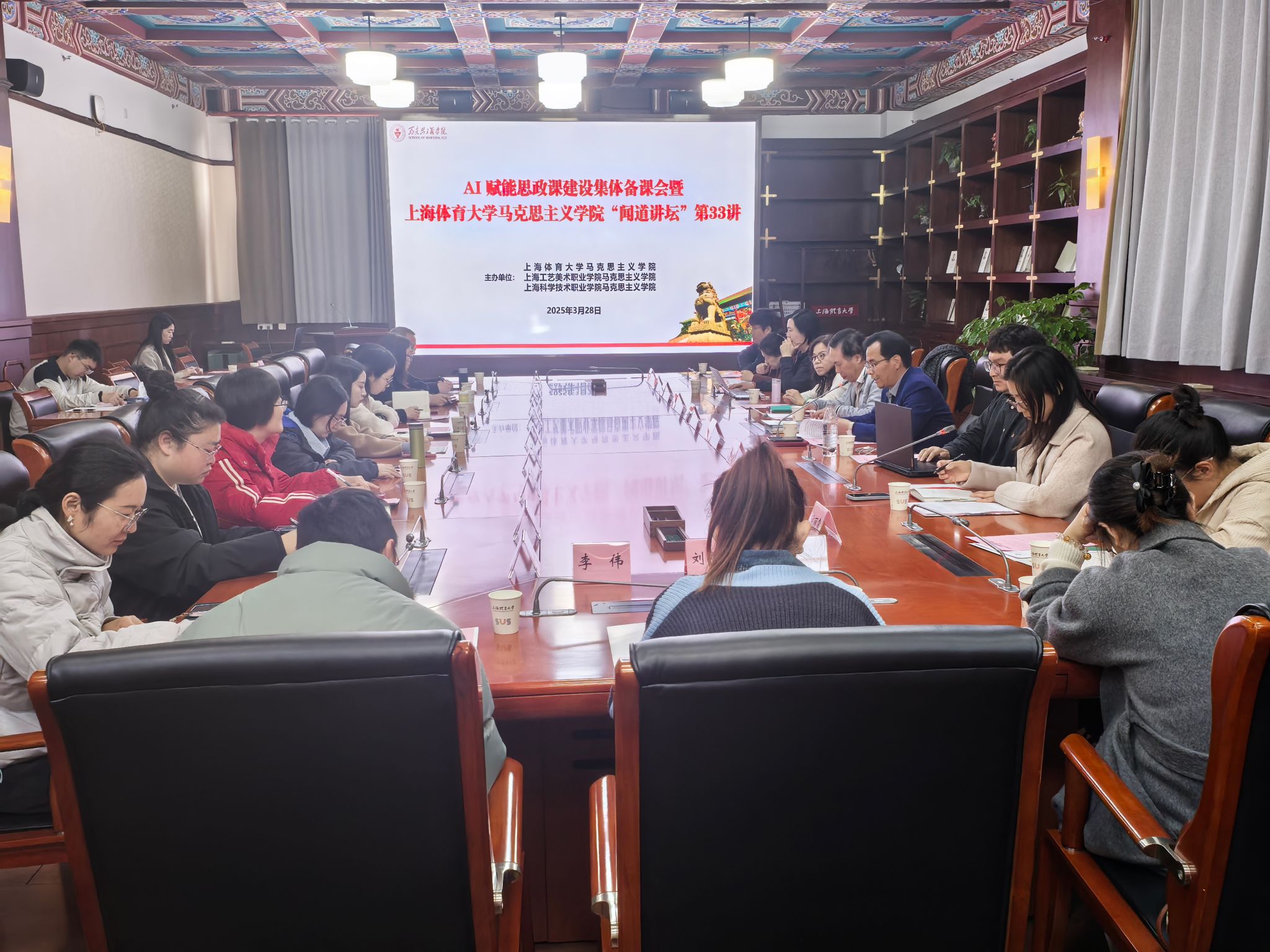 为深入贯彻习近平总书记关于新时代思政课改革创新的重要论述精神,全面落实全国教育大会和上海市教育大会精神,推动人工智能技术与思政课深度融合,探索新时代思政课建设内涵式发展路径,3月28日下午,由yl6809永利、上海工艺美术职业公司yl6809永利和上海科学技术职业公司yl6809永利共同主办的“AI赋能思政课建设集体备课会”在yl6809永利绿瓦大楼第四会议室举行,本次活动同时也是yl6809永利“闻道讲坛”第33讲。上海大学“伟长学者”特聘教授、yl6809永利博士生导师王天恩教授,上海财经大学yl6809永利博士生导师、上海财经大学中国式现代化研究院研究员张桂芳教授作主旨报告,超星集团有限公司朱宇涵、许志豪介绍了人工智能技术应用情况。yl6809永利直属党支部书记、经理胡德平教授致欢迎辞,会议由yl6809永利副经理高晓丽主持。