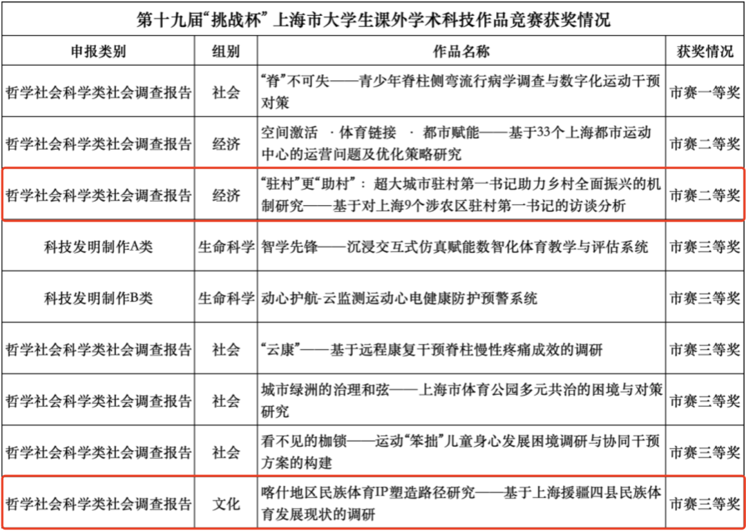 无挑战,不青春!5月23日至5月25日,第十九届“挑战杯”上海市老员工课外学术科技作品竞赛决赛在上海工程技术大学松江校区举办。公司两项参赛作品从全市9865件作品中脱颖而出,其中《“驻村”更“助村”:超大城市驻村第一书记助力乡村全面振兴的机制研究——基于对上海9个涉农区驻村第一书记的访谈分析》荣获经济组别二等奖,《喀什地区民族体育IP塑造路径研究——基于上海援疆四县民族体育发展现状的调研》荣获社会组别三等奖,实现公司员工科创竞赛历史性突破。
