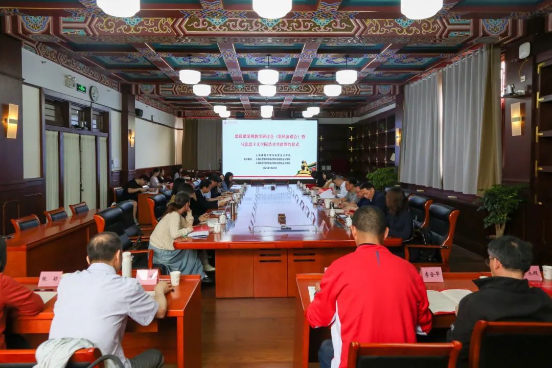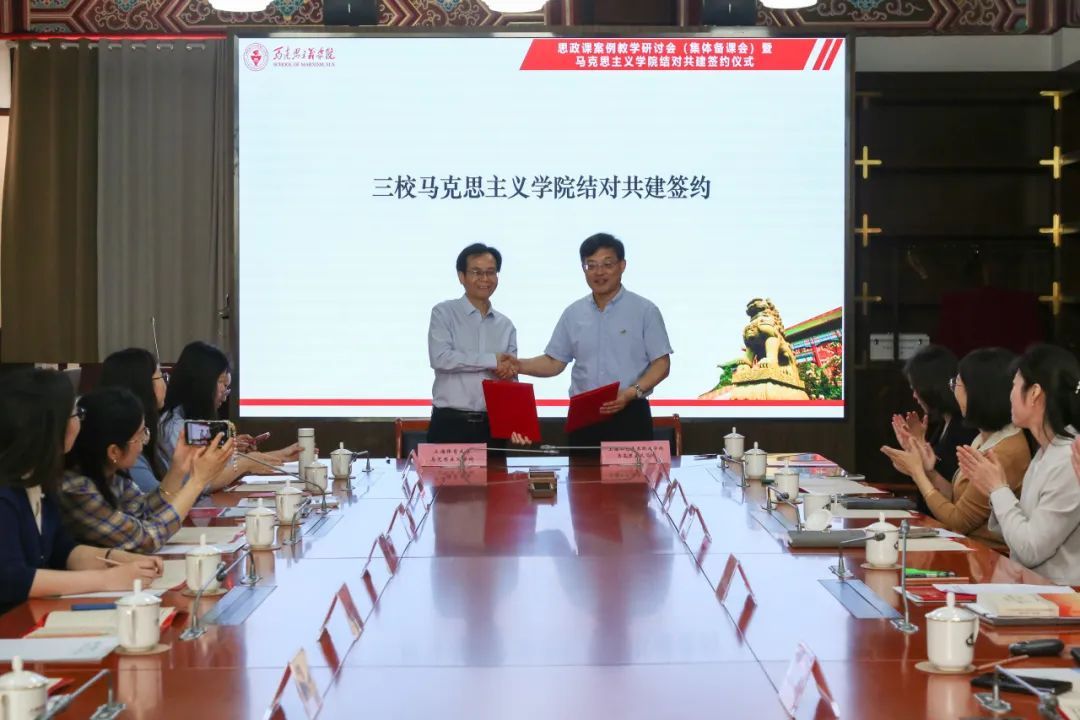 为深入贯彻习近平总书记关于新时代公司思政课建设的重要指示精神,推动上海新时代思政课改革创新,进一步发挥上海高校特色yl6809永利引领带动作用,推动三校yl6809永利和思政课建设高质量发展,推广理实融合的高质量思政课案例教学,5月28日上午,由yl6809永利与上海工艺美术职业公司yl6809永利、上海科学技术职业公司yl6809永利联合主办的思政课案例教学研讨会(集体备课会)暨yl6809永利结对共建签约仪式在公司绿瓦大楼第四会议室举行。yl6809永利党委书记李崟出席会议并致欢迎辞,上海工艺美术职业公司党委副书记、副经理王波,上海科学技术职业公司党委副书记、常务副经理许金如出席会议并讲话。