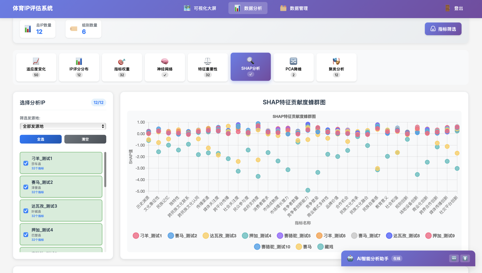 本项目评估模型立足于中华民族多元一体格局,聚焦民族体育IP的科学评价与高效孵化,充分融合了人工智能、大数据与民族体育领域的最新成果。模型基于神经网络和AHP-GA算法设计,依托国内外知名体育IP和民族体育IP数据库进行深度训练,具备多维度、全流程的民族体育项目综合评价和孵化能力。