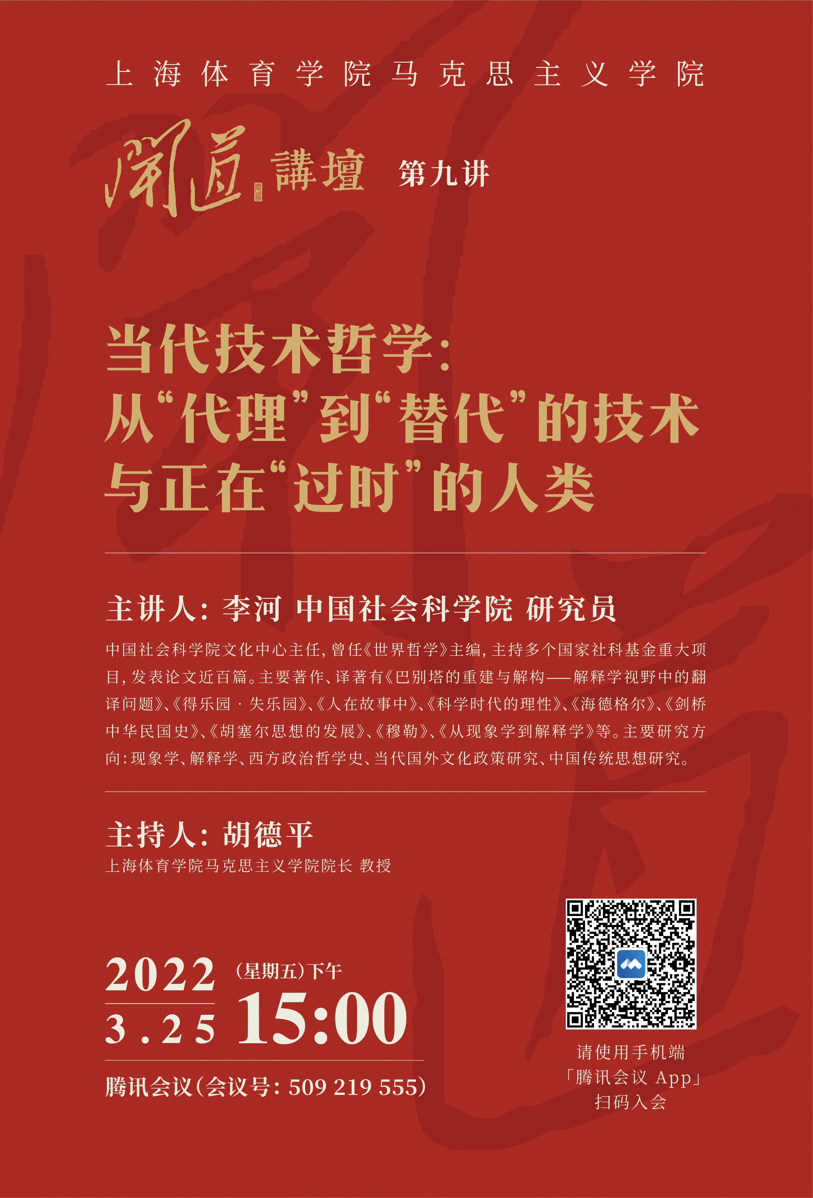 预告|闻道讲坛·第九讲 | 李河:当代技术哲学——从“代理”到“替代”的技术与正在“过时”的人类