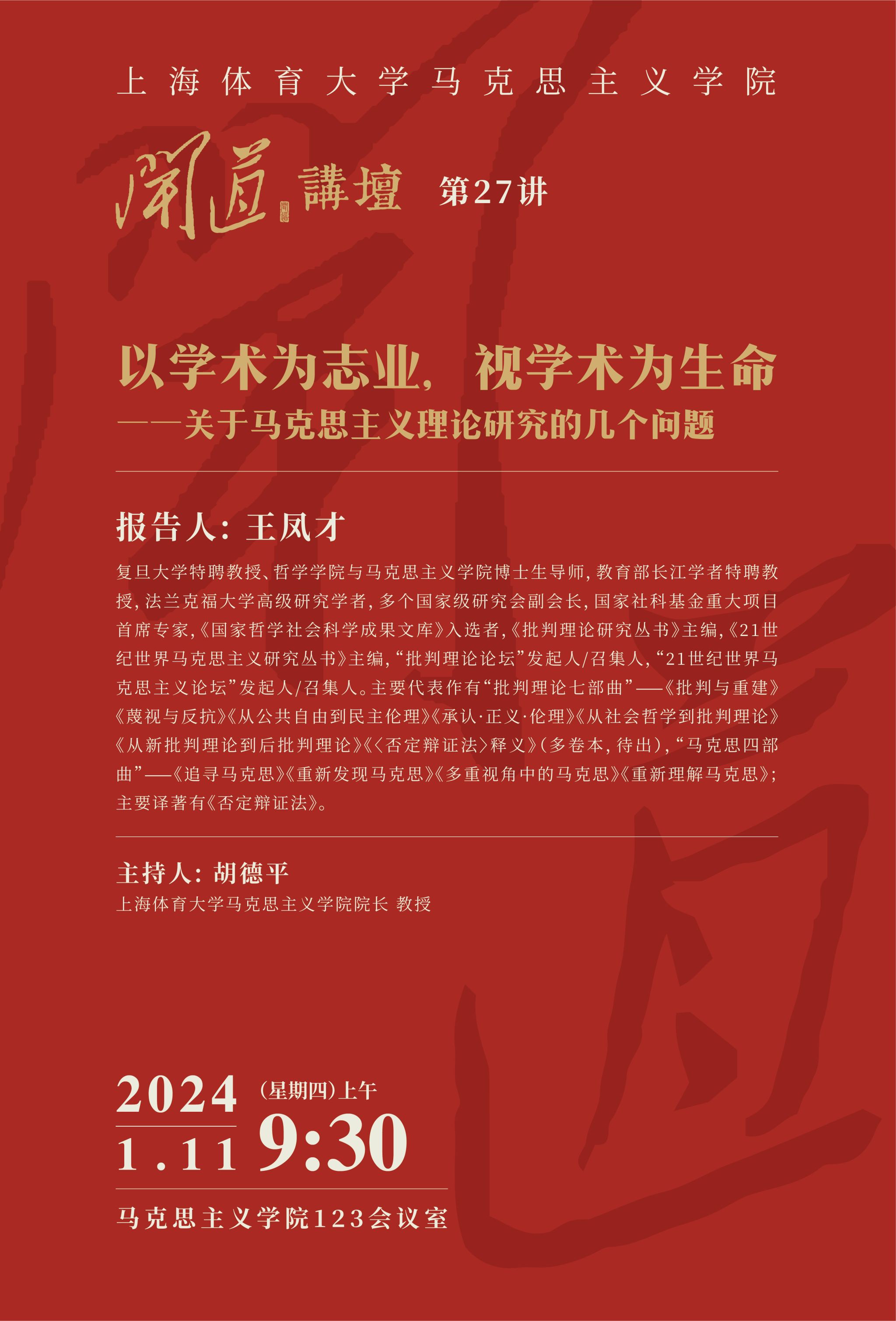 预告|闻道讲坛·第二十七讲:王凤才教授——以学术为志业,视学术为生命—关于马克思主义理论研究的几个问题
