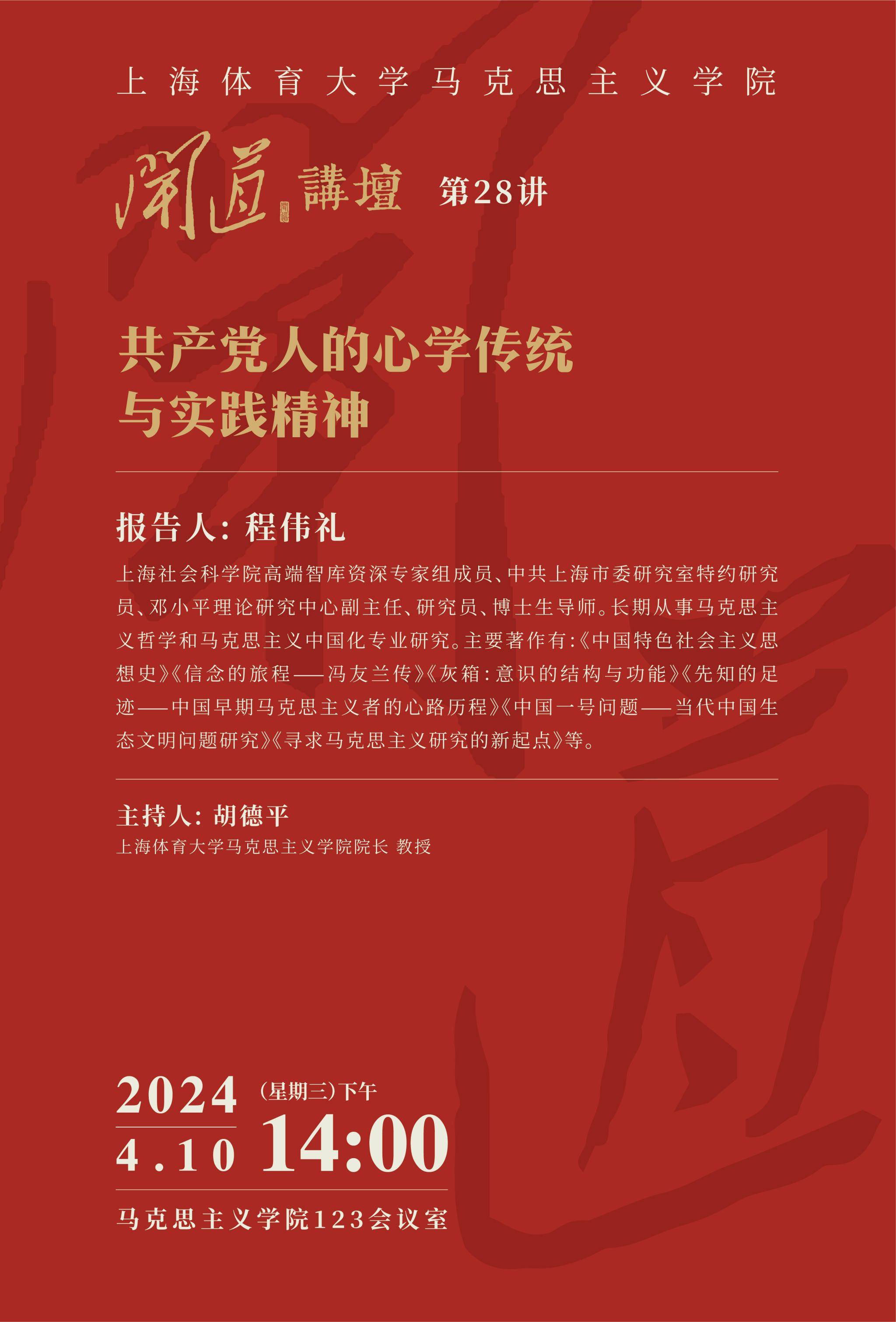 预告|闻道讲坛·第二十八讲:程伟礼——共产党人的心学传统与实践精神