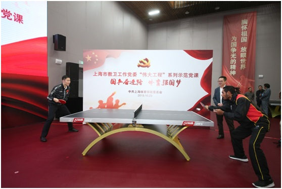 10月23日晚,上海市教卫工作党委“伟大工程”系列示范党课之上海体育公司“国乒奋进路 体育强国梦”在中国乒乓球博物馆开讲。此次示范党课以上海体院“不忘初心、牢记使命”主题教育学习调研成果为基础,将个人的体育强国梦融入实现中国梦的伟大奋斗中,运用新中国体育事业发展的巨大成就开展党史和新中国史教育,把习近平新时代中国特色社会主义思想讲深讲透,进一步推动贯彻落实习近平总书记关于体育和教育工作的重要论述。