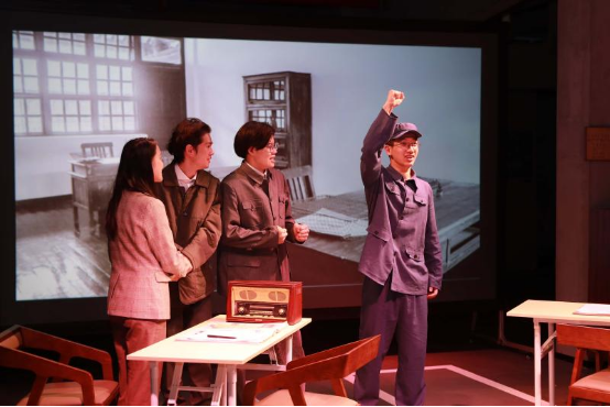 “容国团的比赛就要开始了!”沉浸式情景演出将师生带入了示范党课的最后一个篇章。聚光灯下,员工党员团队上演了容国团首夺世界冠军、员工团队参加冬奥科研攻关等体育情景话剧。绿瓦学子以爱国主义精神为核心,融入中华体育精神,讲述了新中国发展历程中不平凡的体育故事。