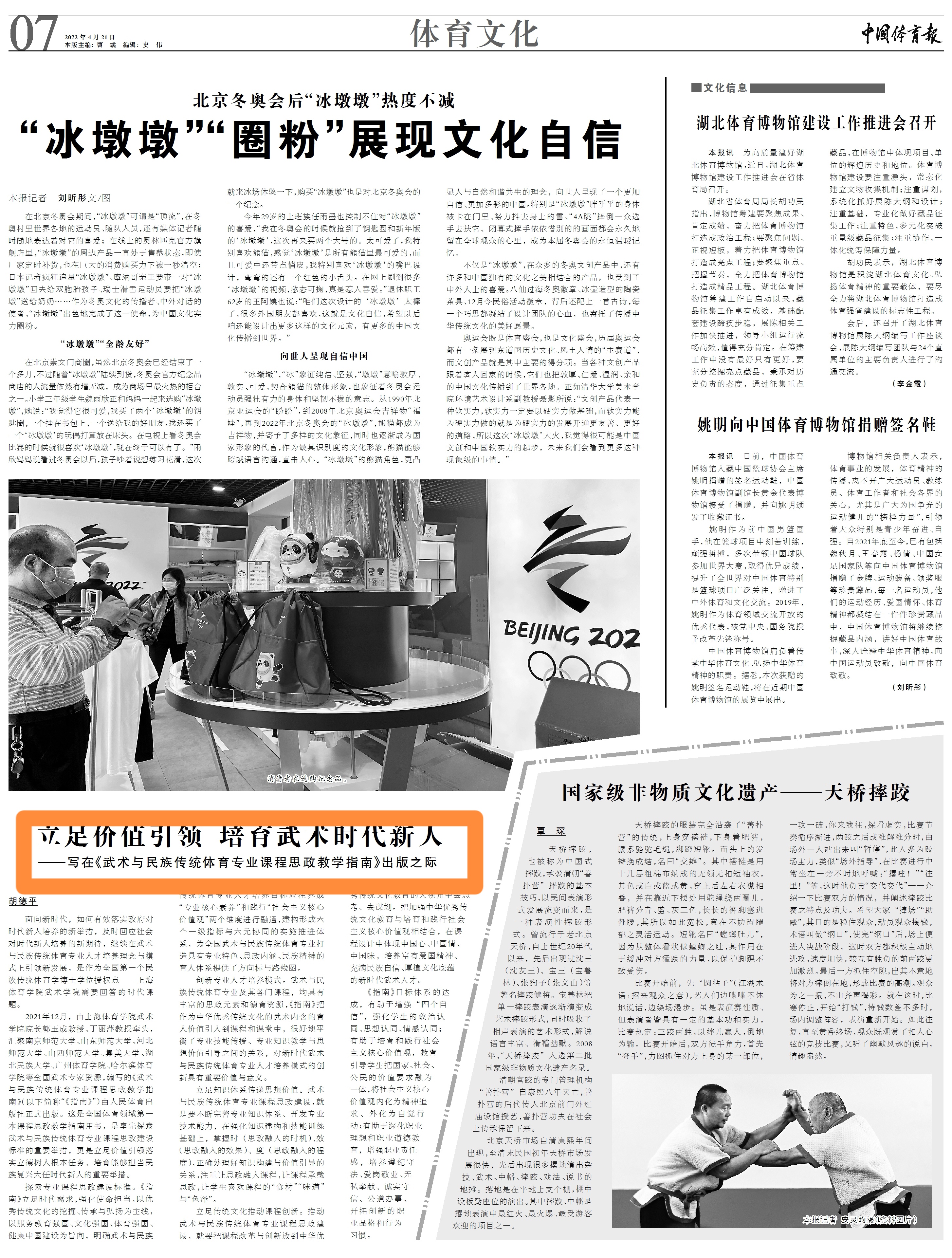 4月21日《中国体育报》第7版发表公司经理胡德平教授文章《立足价值引领培育武术时代新人》,该文章为我国体育领域第一本课程思政教学指南用书《武术与民族传统体育专业课程思政教学指南》(以下简称“《指南》”)的书评。
