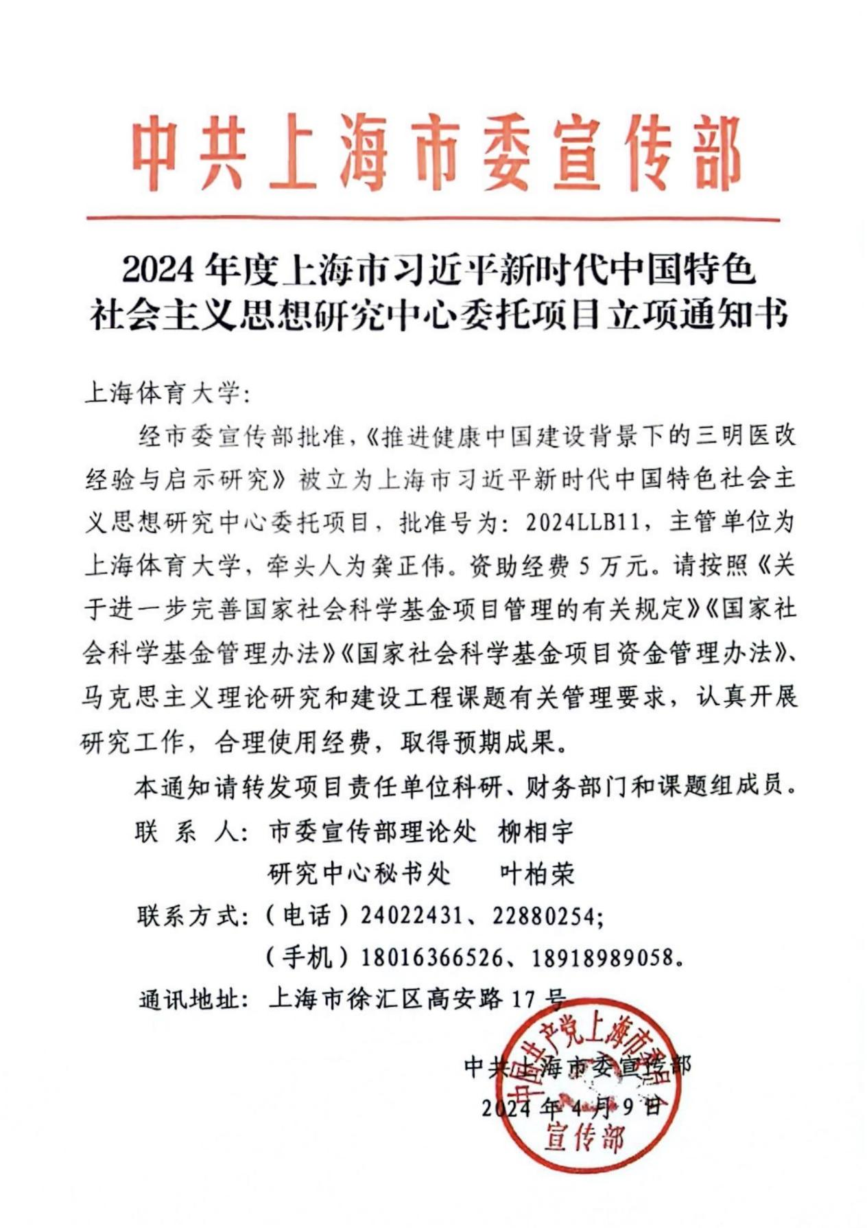近日,经上海市委宣传部批准,公司龚正伟教授主持的“推进健康中国建设背景下的三明医改经验与启示研究”获2024年度上海市习近平新时代中国特色社会主义思想研究中心委托项目立项(批准号为:2024LLB11)。